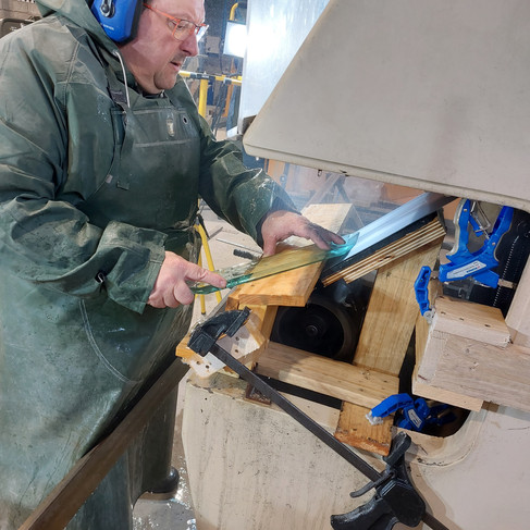 Lors de sa visite au lycée Jean Lurçat, Bernard Maillot a partagé sa passion pour l'art de la miroiterie avec les jeunes en formation, leur expliquant les techniques qu'il a utilisées pour créer sa table en verre.
